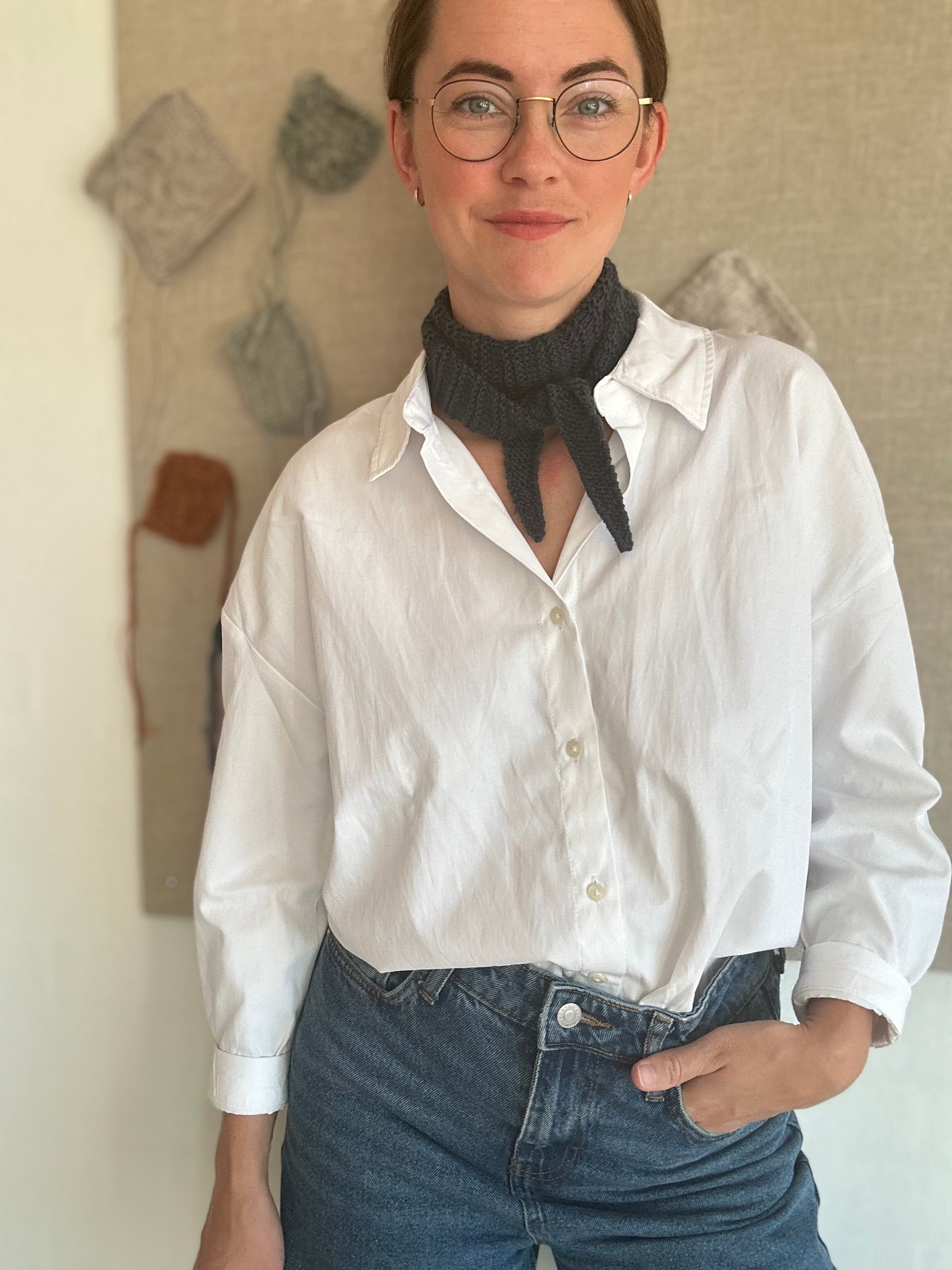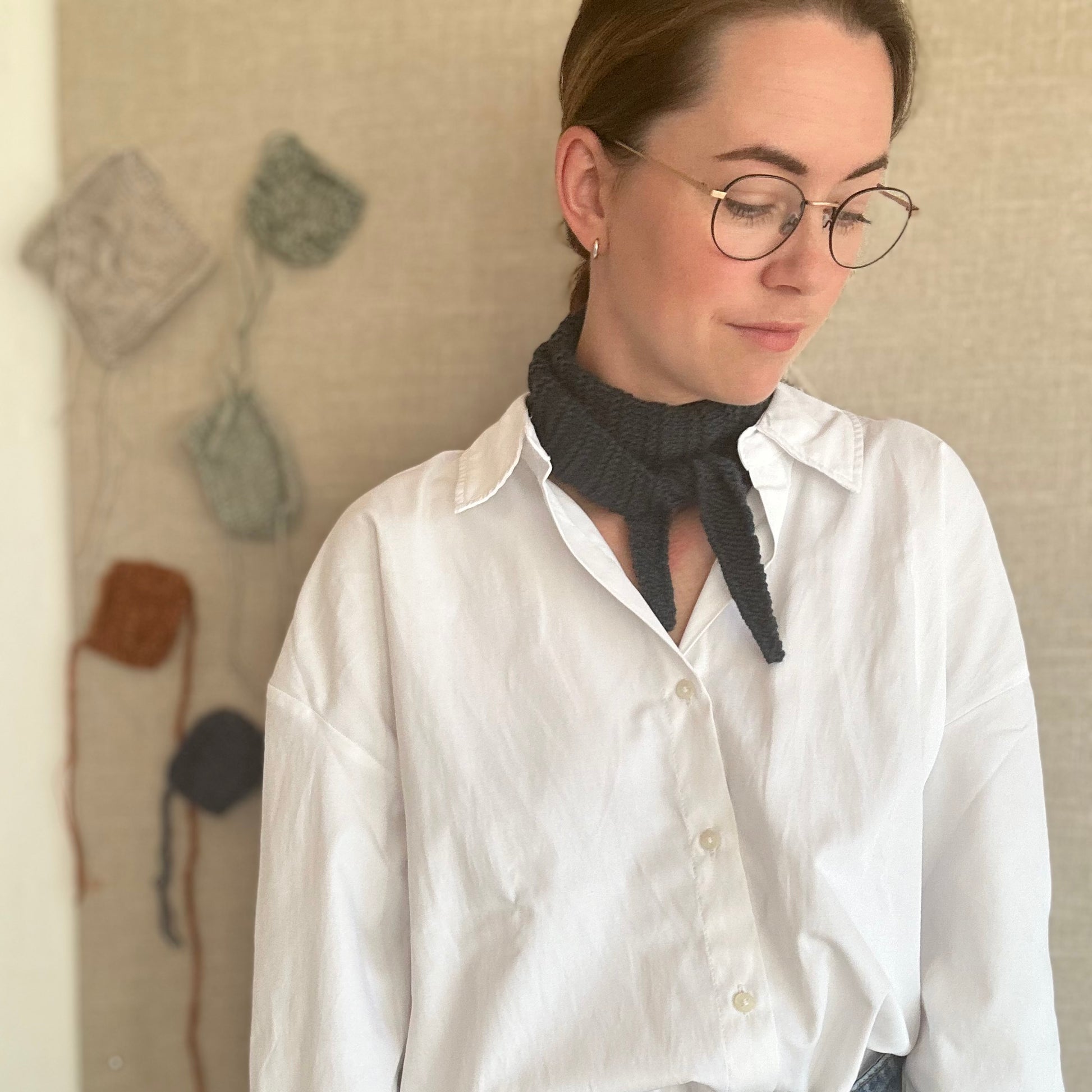 Deep Waves Scarf strikkes fra den ene ende til den anden, med ind- og udtagninger til at danne formen. Mønsteret består af glatstrik og retriller. Originalen er strikket i det smukke tweed for at give det et anderledes spil. Et enkelt æstetisk smukt tørklæde.